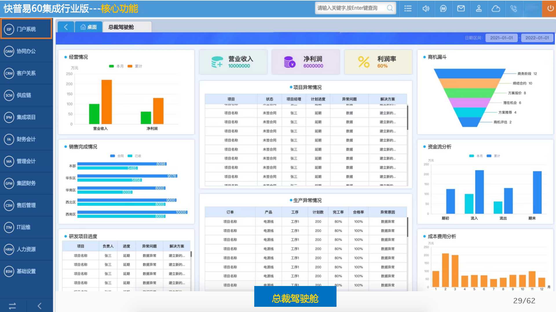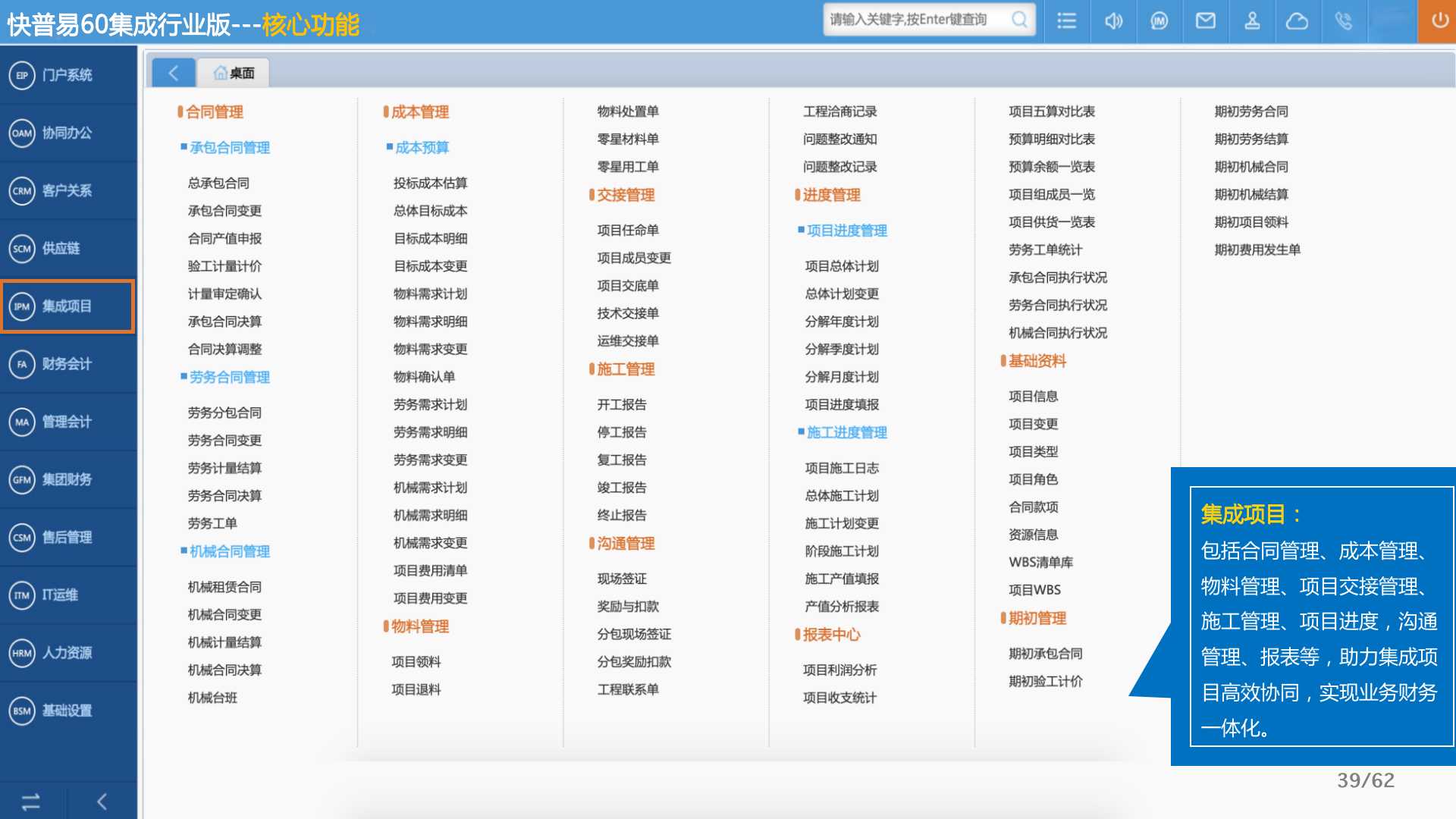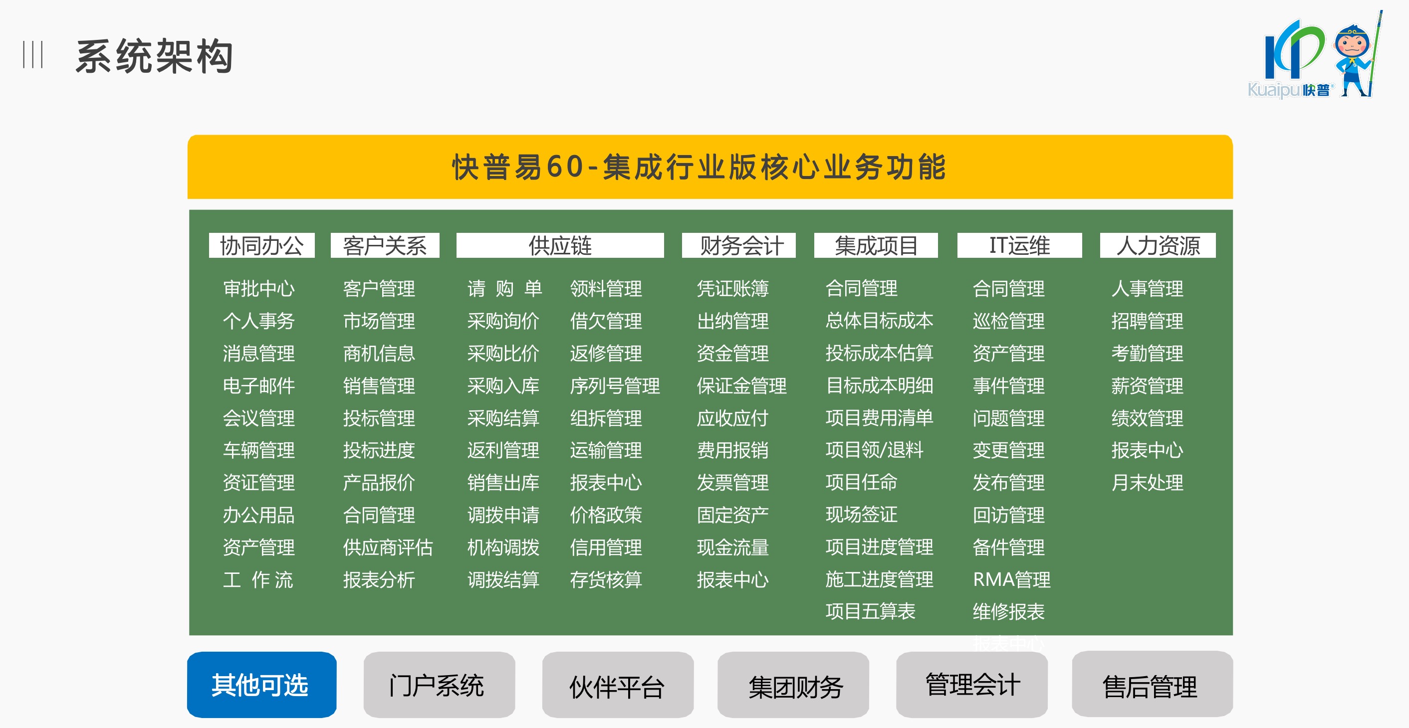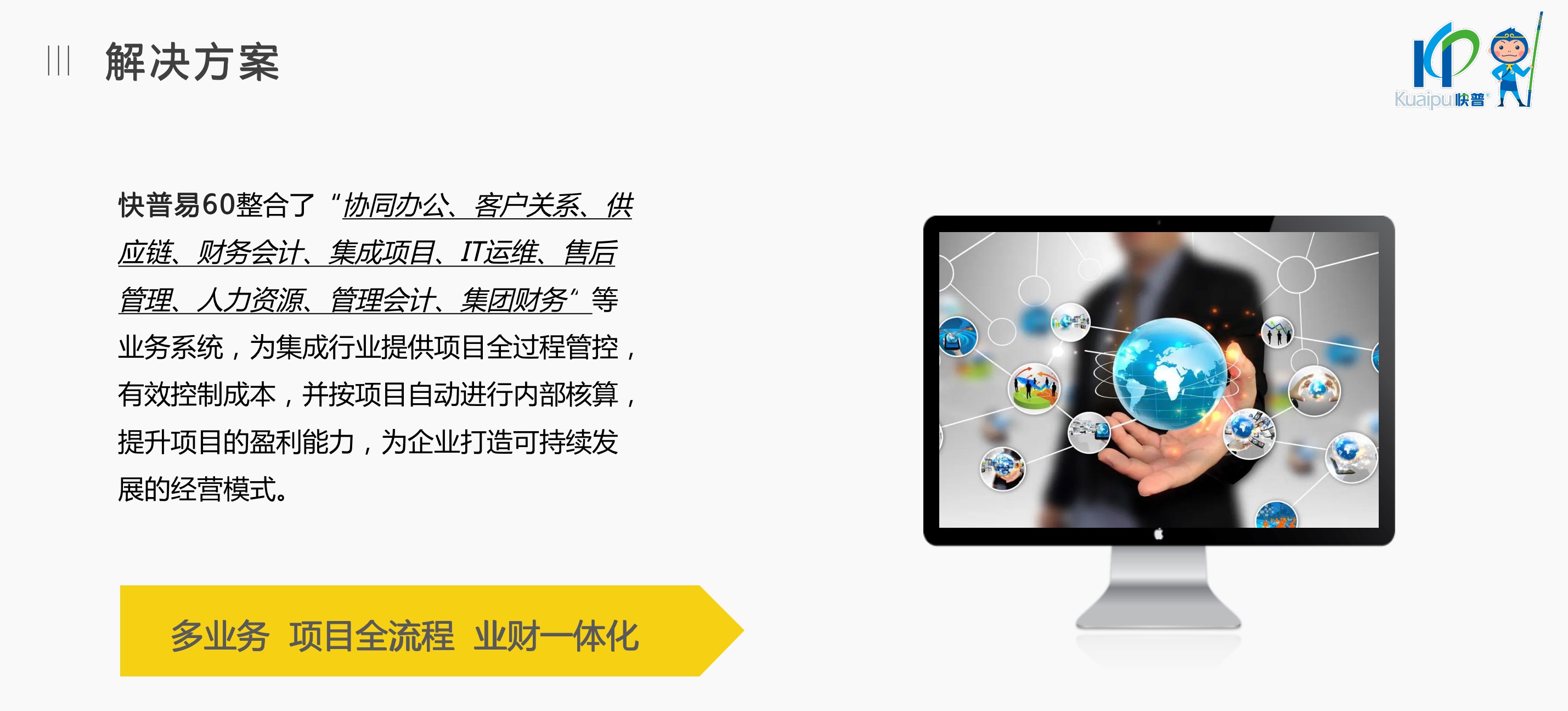 快普易60以客戶為目標、以項目為核心,為集成行業(yè)提供數(shù)字化管理解決方案,為組織和業(yè)務(wù)提效,實現(xiàn)項目全過程管控,有效控制成本,并按項目自動進行內(nèi)部核算,提升項目的盈利能力,為企業(yè)打造可持續(xù)發(fā)展的經(jīng)營模式。