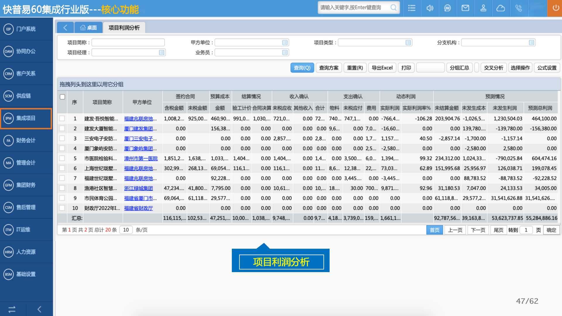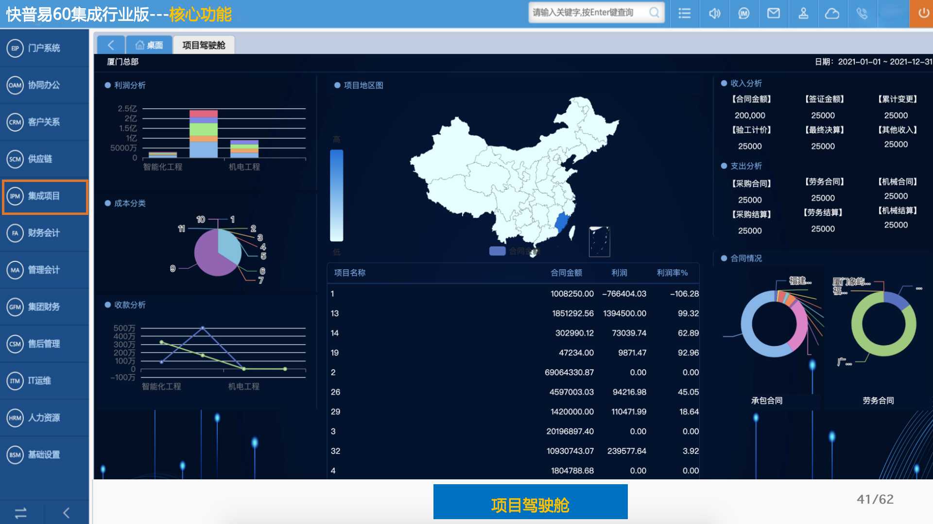 以“客戶”為中心提供相關(guān)集成解決方案,同時兼營產(chǎn)品銷售、分銷批發(fā)——多業(yè)務(wù)模式并行是集成企業(yè)管理的難點,而項目管理則是難點中的重點。集成項目有大有小、周期長短不一,貨品多樣化且客戶要求高,從供貨到項目進度、費用核算、利潤分析等都急需一套規(guī)范且靈活的方案。