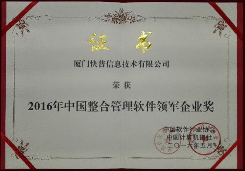 廈門(mén)快普連續(xù)五年受邀參加軟博會(huì)。廈門(mén)快普作為中國(guó)整合管理的倡導(dǎo)者、推動(dòng)者和領(lǐng)導(dǎo)者,在公司創(chuàng)立時(shí)就將“整合管理”作為企業(yè)的發(fā)展戰(zhàn)略,并戰(zhàn)略性地提出:“將整合進(jìn)行到底,把整合做到極致,讓所有企業(yè)實(shí)施整合管理”,立志成為中國(guó)企業(yè)整合管理專(zhuān)家,堅(jiān)持把最前沿、最創(chuàng)新、最復(fù)雜、最有想法、含金量最高的IT行業(yè)作為公司發(fā)展的戰(zhàn)略性行業(yè),長(zhǎng)期專(zhuān)注為系統(tǒng)集成企業(yè)、軟件企業(yè)、智能化企業(yè)、工程企業(yè)及高新技術(shù)企業(yè)等這些關(guān)聯(lián)度很高的行業(yè)提供整體管理解決方案,用盡可能低的成本解決這些前沿創(chuàng)新的經(jīng)營(yíng)管理模式,幫助這些企業(yè)實(shí)現(xiàn)管理升級(jí),因此榮獲“2016年度中國(guó)整合管理軟件領(lǐng)軍企業(yè)獎(jiǎng)”,廈門(mén)快普董事長(zhǎng)溫祝平先生同時(shí)榮獲“2016年度中國(guó)整合管理軟件領(lǐng)軍人物獎(jiǎng)”!