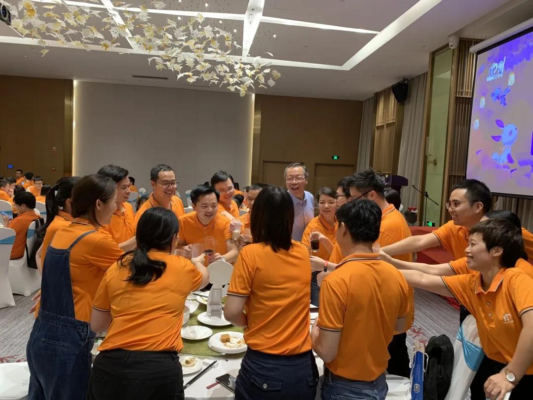 國慶逢中秋,花好月圓夜。美酒佳肴,我們團(tuán)聚在一起,把酒將天問,家國共團(tuán)圓。晚宴上,溫董親自為全體員工祝酒,為各部門送去關(guān)切的問候。
