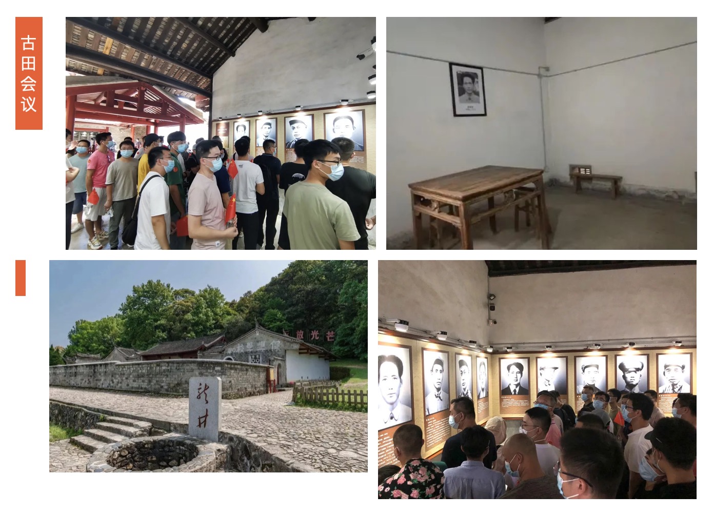 會(huì)場里還遺留著當(dāng)年用毛邊紙書寫的“反對(duì)機(jī)會(huì)主義”、“反對(duì)盲動(dòng)主義”、“反對(duì)冒險(xiǎn)主義”等標(biāo)語。古田精神指出:克服極端民主化傾向,上級(jí)的決定必須執(zhí)行,嚴(yán)格組織紀(jì)律,紅軍能打勝仗,靠的就是這種組織路線的貫徹執(zhí)行。