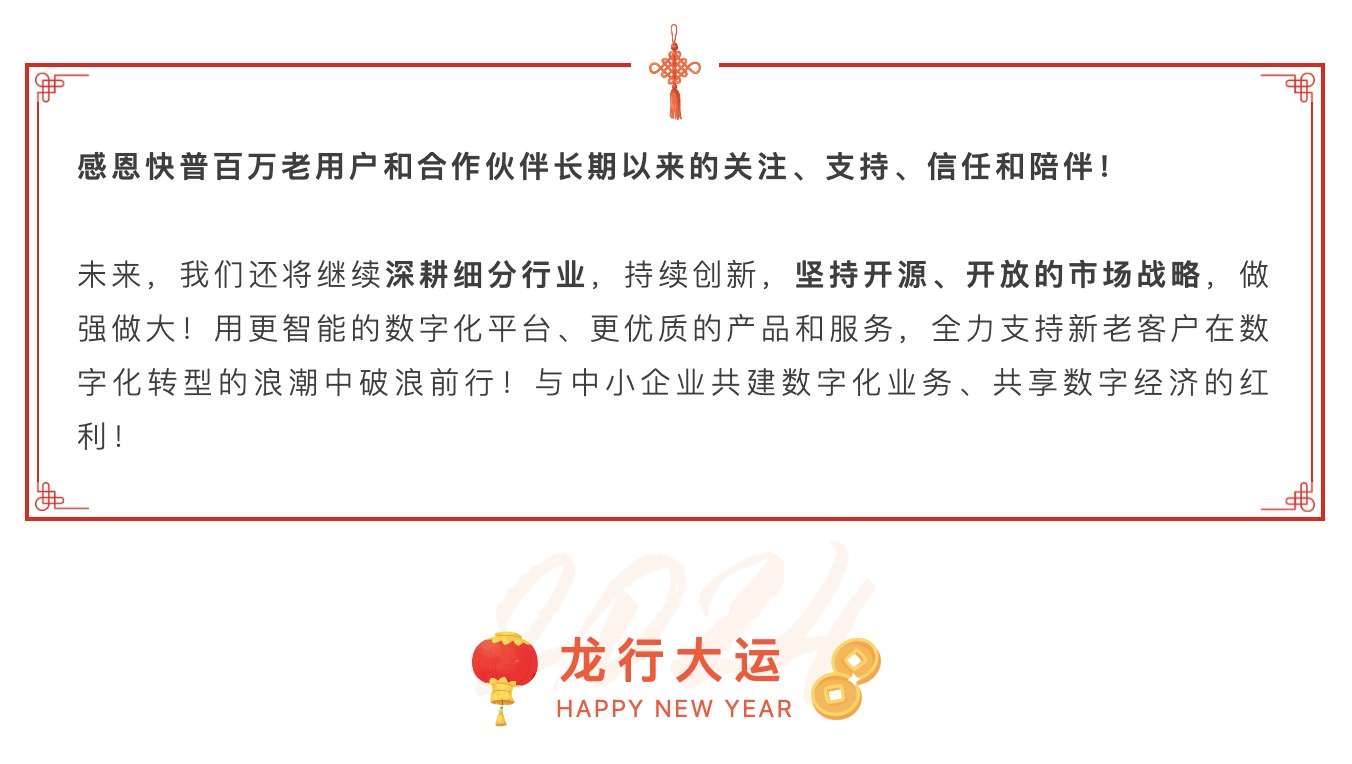 2023年是快普銳意改革、開(kāi)拓進(jìn)取的一年。面對(duì)機(jī)遇和挑戰(zhàn),我們苦練內(nèi)功,加大研發(fā)投入,積極擁抱市場(chǎng),通過(guò)新一代“易”系列產(chǎn)品,幫助大量企業(yè)成功實(shí)現(xiàn)數(shù)字化的轉(zhuǎn)型升級(jí),賦能企業(yè)邁向高質(zhì)量發(fā)展!同時(shí),快普也實(shí)現(xiàn)了自身的逆勢(shì)增長(zhǎng),多項(xiàng)科技創(chuàng)新成果獲得了政府的嘉獎(jiǎng)與社會(huì)各界的好評(píng)!2024年,我們不忘初心,堅(jiān)守“數(shù)字化平臺(tái)服務(wù)商”的使命,1月份再創(chuàng)多項(xiàng)佳績(jī)!